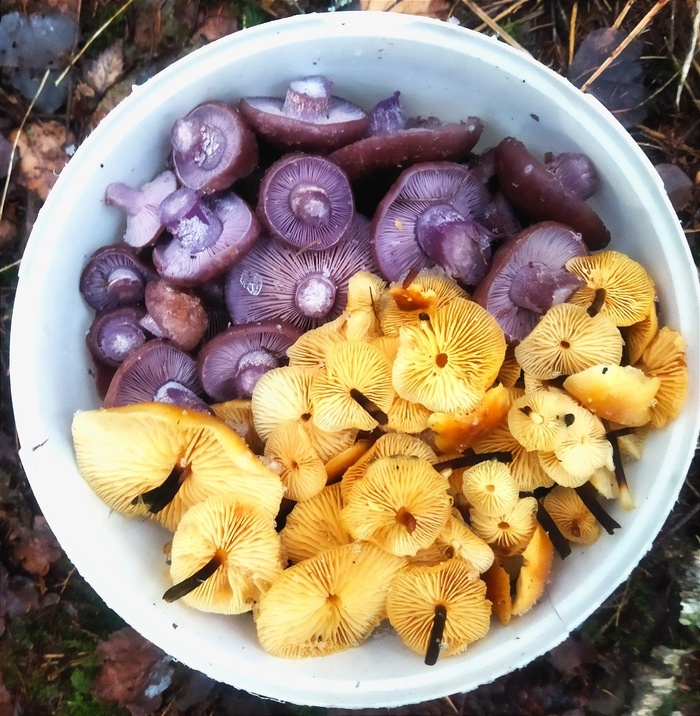Фиолетовая рядовка и фламмулина (зимний опенок). Не планировала собирать рядовки в этом году, но, всё же, решила закрыть пару баночек для мамы, уж очень она их любит в маринаде. В городе потеплело, но в лесу снег так и не растаял. Лёгкий морозец. Зеленеют мхи. На деревьях много красивых трутовиков. Дождевики превратились в ледышки. Мицены присыпало снегом. Но в хвойном опаде тепло и они ещё чувствуют себя вполне уютно. Там же прячутся и рядовки. Поганочка на снегу. Фламмулина (зимний опенок). Пожалуй, приготовлю пирог с курицей, сыром и фламмулиной - не пропадать же добру. Вот такая обстановка сейчас в лесу на юге Подмосковья. Думаю, следующая вылазка по грибы будет уже на лыжах). А ещё, вот такие классные бочки встретились на границе леса и дачных участков. Пост автора Drugptic. Читать комментарии на Пикабу.
