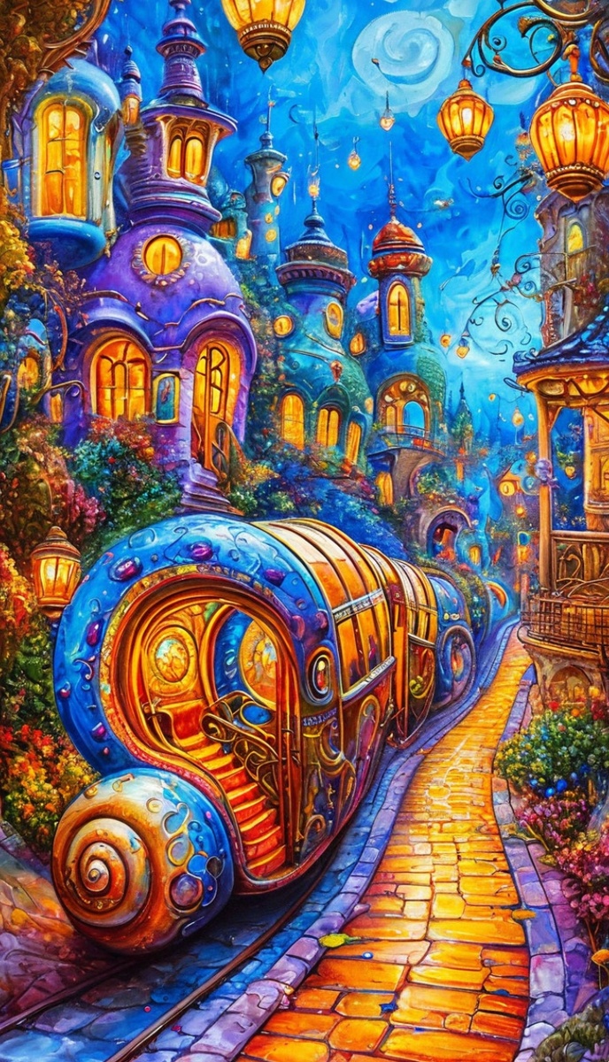 В Улиточном Городе, где каждый день приносит новые приключения, транспорт играет ключевую роль в жизни его жителей. Мия, улитка-блогерша, решила рассказать о том, как улитки будут передвигаться по своему уникальному городу. УЛИТОЧНЫЕ ТРАМВАИ В сердце города курсируют улиточные трамваи — медленные, но надежные. Эти трамваи сделаны из переработанных ракушек и обвиты мягкими водорослями для комфорта пассажиров. Каждый трамвай украшен яркими рисунками, отражающими культуру и традиции улиток. Мия обожает снимать видео о том, как улитки садятся в трамвай, обмениваются новостями и делятся историями. УЛИТОЧНЫЕ МАШИНЫ Улиточные машины — это небольшие, но очень стильные транспортные средства, созданные из переработанных материалов. Они имеют округлую форму, чтобы соответствовать естественным линиям улиток, и оснащены мягкими сиденьями из водорослей. Каждая машина украшена уникальными узорами, отражающими индивидуальность владельца. Мия обожает снимать видео о том, как улитки управляют своими