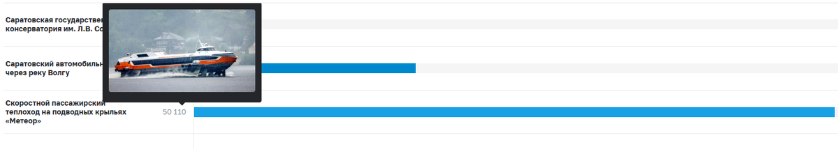 На первом месте - пассажирский теплоход на подводных крыльях "Метеор":