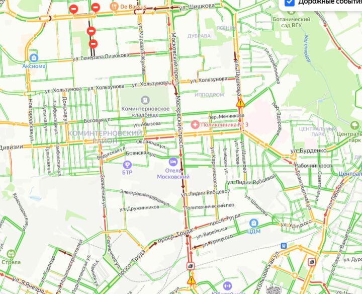 Затор продолжает увеличиваться Пробка длиной 3,5 километра образовалась на Московском проспекте сегодня утром, 3 декабря. Информация о заторе появилась в сервисе «Яндекс.Карты». Причиной затора могло стать ДТП. Возле места аварии также отмечен аварийно-опасный участок дороги. Пробка продолжает увеличиваться. На прилегающих улица — Урицкого, проспекте Труда, 45-й Стрелковой дивизии, бульваре Победы — затруднено движение. В городе также отмечаются пробки на Антонова-Овсеенко, 9 Января, Ворошилова, 20-летия Октября, Кирова, Плехановской, Шишкова, Крынина и Тимирязева. Ситуация с пробками в городе оценивается в шесть баллов.