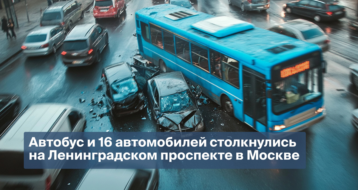 Автобус и 16 автомобилей столкнулись на Ленинградском проспекте в Москве