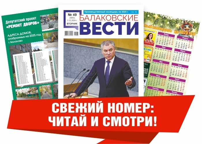 Читайте в свежем номере № 49 от 03.12.2024 газеты «Балаковские вести»