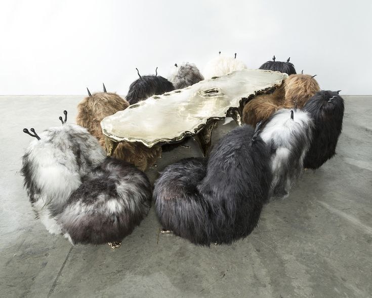 Братья Николай и Саймон Хаас считают современный дизайн холодным и безликим, и убеждены, что сегодня людям нужны более живые и эмоциональные образы. А потому Haas Brothers выпустили коллекцию Beast, многие предметы которой были обиты исландской овчиной, мехом финского оленя или мехом буйвола. А так же, установлены на бронзовые ножки в форме копыт или лап животных. На ярмарке в Базеле, как вспоминают близнецы, их соседом оказался дилер французского антиквариата. Его стенд большую часть времени пустовал, зато у братьев Хаас была толпа: всем хотелось рассмотреть странные меховые кушетки и рогатые кресла. Похожие на сказочных существ из фильмов вроде “Бесконечной истории” и “Там, где живут чудовища”, домашние монстры — постоянные образы творческой вселенной Haas Brothers. О себе говорят, что идеально дополняют друг друга. Саймон отвечает в дуэте за аналитику, точные расчеты, технологии, а у Ники сильные стороны — это абстрактное мышление, импровизация, рисунок. В студии работает не более