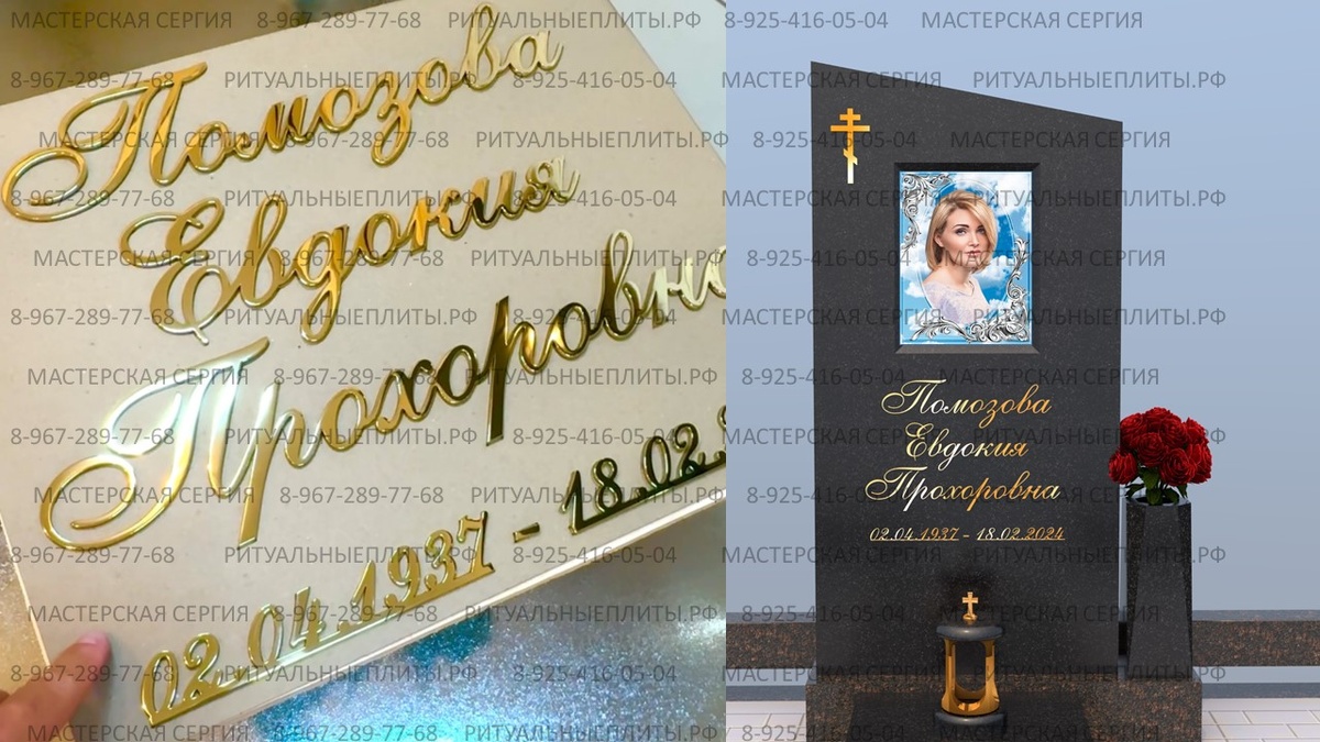 Мы создаём накладные буквы, кресты, рамки, композиции и другие декоративные элементы. Каждое изделие тщательно проектируется, а перед началом работы предоставляется 3D-макет, чтобы вы могли увидеть, как надписи и другие элементы будут смотреться на памятнике. Скидки и доставка: Мы выполняем установку по Москве и Московской области, а также доставляем изделия в другие регионы. Свяжитесь с нами для консультации или заказа: