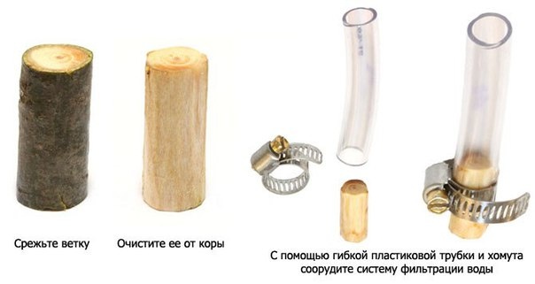 Если, разбив палатку на берегу озера, вы вдруг обнаружили, что не запаслись питьевой водой — не отчаивайтесь. Есть простое решение проблемы: срежьте ветвь с ближайшей сосны, очистите ее от коры, и используйте ветку вместо фильтра, медленно пропуская через нее озерную воду. Самодельный фильтр остановит любых бактерий.