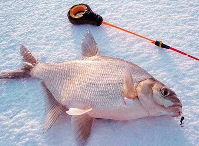 Лещ. Этот заветный трофей всех любителей зимней мормышки и поплавочной удочки. Тем не менее, ловля крупного леща зимой представляет собой сложное искусство, требующее четкой продуманности действий и терпения. Традиционно считается, что декабрь и начало января — наилучший период для ловли леща на поплавочную удочку. В это время он активно кормится, перемещаясь большими стаями по бровкам затопленного русла, уклонам фарватера, котлам и краям других донных углублений, изобилующих обрастаниями, которые служат ему пищей. Наиболее продуктивные участки на водохранилищах и других зарегулированных водоёмах часто располагаются в местах, где течение приносит обогащённую кислородом воду и сочетает соответствующий рельеф дна, позволяющий скапливаться кормовым организму: мотылю, трубочнику, водным личинкам и другим. Лещовая стая обычно обитает неподалёку от таких мест, чаще на глубинах 8-12 м, где царят оптимальные температурные условия, но может быть малоподвижной и практически не питаться. В период открытия шлюзов, при благоприятных погодных условиях и стабильном атмосферном давлении, лещи начинают активно перемещаться вдоль русловых бровок, выходя из ям к местам, куда течение приносит вымываемый корм и осаждает его в углублениях донного рельефа или боковых ответвлениях русла. Лещ также может выходить на предрусловые поливы и менее глубокие выходы из ям.