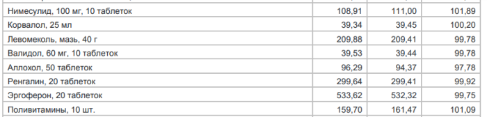 Противовирусные препараты, напротив, подешевели на несколько рублей. Это аллохол, эргоферон, комбинированные анальгетики и ренгалин. Также снизилась цена на мазь левомеколь.