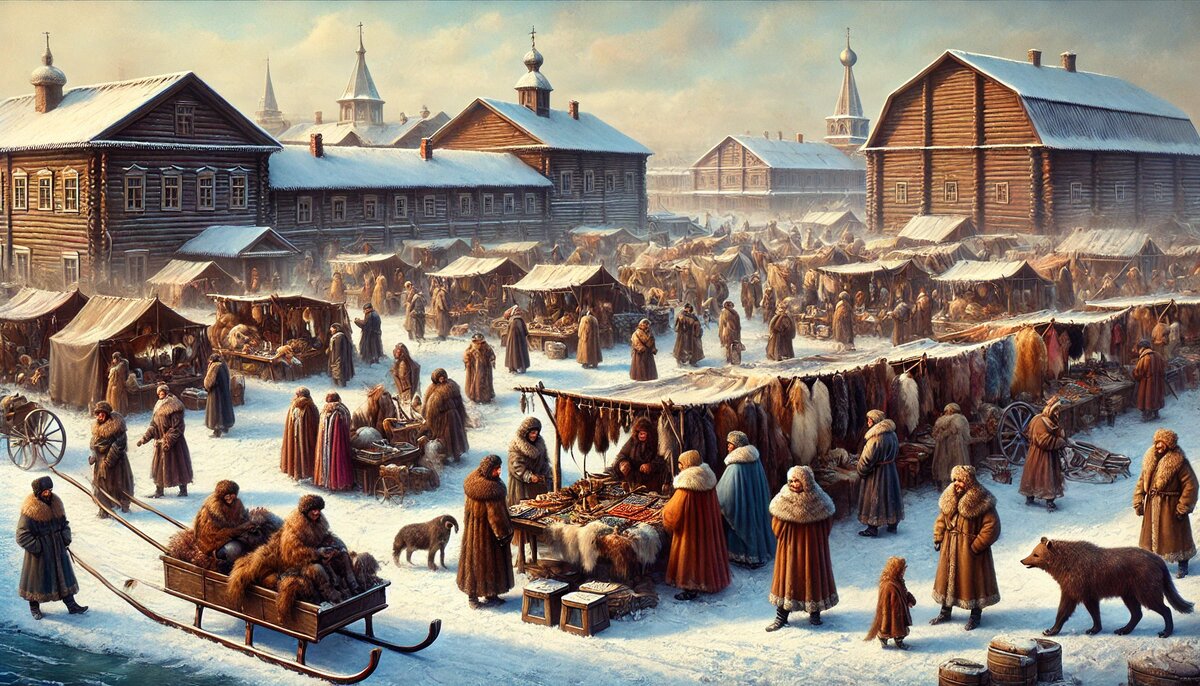 В реальной истории ярмарки, такие как Макарьевская в Нижнем Новгороде или Ирбитская на Урале, играли важную роль в торговле. Они собирали купцов из разных уголков страны и соседних земель, превращаясь в площадки для экономического и культурного обмена. Особенно зимой, когда морозы облегчали транспортировку грузов, ярмарки становились ключевыми пунктами торговли.