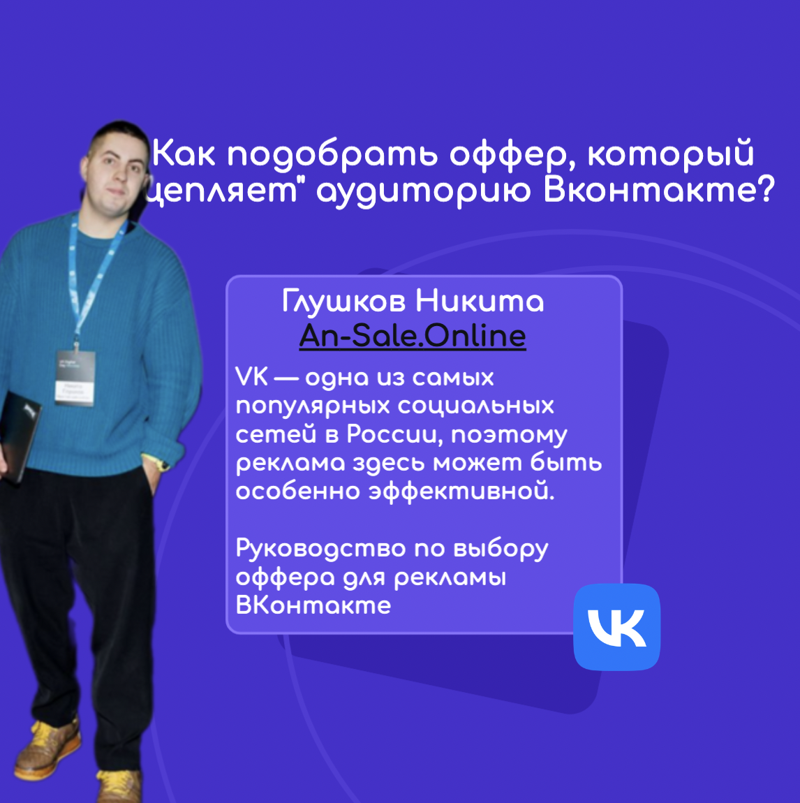 ▎Как подобрать подходящий оффер под рекламу ВКонтакте: говорим на понятном языке Реклама ВКонтакте – это мощный инструмент для привлечения новых клиентов и повышения продаж. Но чтобы она действительно работала, нужно не просто разместить красивую картинку и текст. Важно правильно подобрать оффер – то самое предложение, которое зацепит вашу целевую аудиторию и побудит ее совершить нужное вам действие (купить товар, подписаться на рассылку, оставить заявку и т.д.). Что такое оффер? Проще говоря, оффер – это ваше предложение, которое вы делаете потенциальному клиенту. Это может быть скидка, бесплатная доставка, подарок при покупке, доступ к эксклюзивному контенту или что-то еще, что выгодно отличает ваше предложение от конкурентов. Как подобрать подходящий оффер? 1. Поймите свою целевую аудиторию: • Кто ваши потенциальные клиенты? • Какие у них потребности и желания? • Что их мотивирует? • Какие проблемы они пытаются решить? Чем лучше вы понимаете свою аудиторию, тем проще подобрать оффер