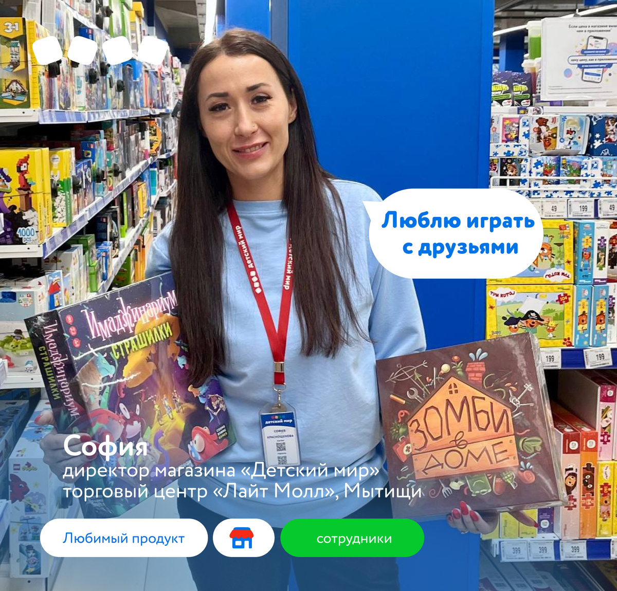 София — директор магазина в Мытищах — выбирает настольные игры, потому что это спасение от скуки и смартфонов. А ещё настолки объединяют, развивают смекалку и фантазию! Какие игры предпочитаете вы?