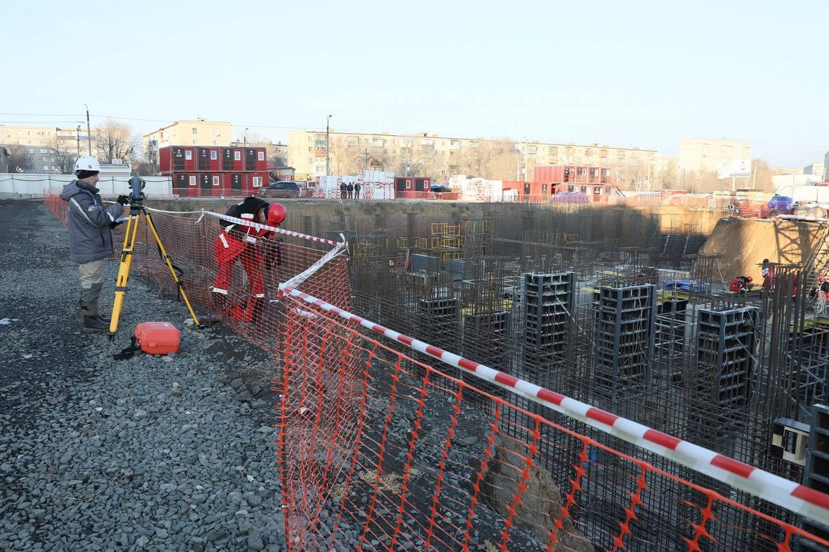 Строительная площадка организована с высоким уровнем безопасности: она накрыта бетонными плитами, предусмотрены мойки для машин и решётки для чистки обуви. На объекте строго соблюдаются требования законодательства по охране труда — все рабочие обеспечены касками, перчатками и страховочными поясами. На данный момент ведутся работы по бетонированию несущих колонн и потолочного перекрытия подземной автостоянки, которая будет общей для двух 12-этажных зданий. Каждое здание будет иметь три и четыре подъезда соответственно, а на первом этаже разместятся коммерческие помещения для торговли и ус