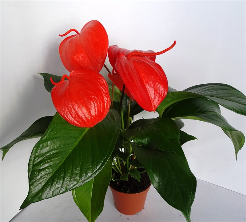 Антуриум Шерцера вырастить нелегко, но ваши усилия будут вознаграждены его цветением. Растение цветет, как правило, летом, но в хороших условиях может зацвести в любое время года. У здорового растения плотные кожистые листья, в период цветения на цветоносах появляются все новые и новые бутоны. Экзотические цветки антуриума уникальны по форме и текстуре. Они отдаленно напоминают фламинго, поэтому в быту растение так и называют - цветок фламинго. Обычно ярко-алые, кроющие листья соцветий могут быть белыми или розовыми, иногда - белыми с красными крапинками. В центре цветка расположен желтый или оранжевый початок, закругленный спиралью. Соцветия, которые появляются последовательно, часто становятся слишком тяжелыми для своего цветоноса, и тогда растению требуются опоры. Период цветения может длиться до 8 недель. При правильном уходе, с учетом особенностей этого растения, оно будет хорошо развиваться и ежегодно цвести. Условия содержания Освещенность: защищайте растение от пря