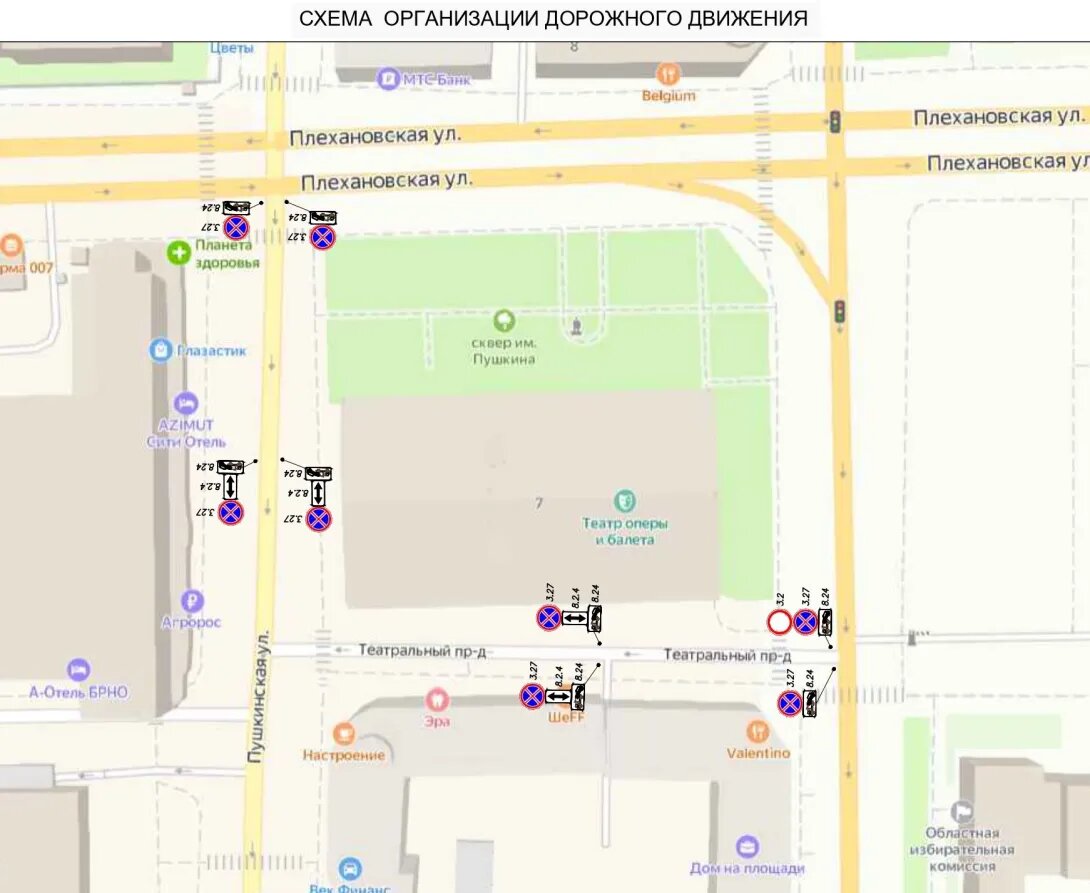 В Воронеже почти на сутки перекроют движение в районе Театра оперы и балета