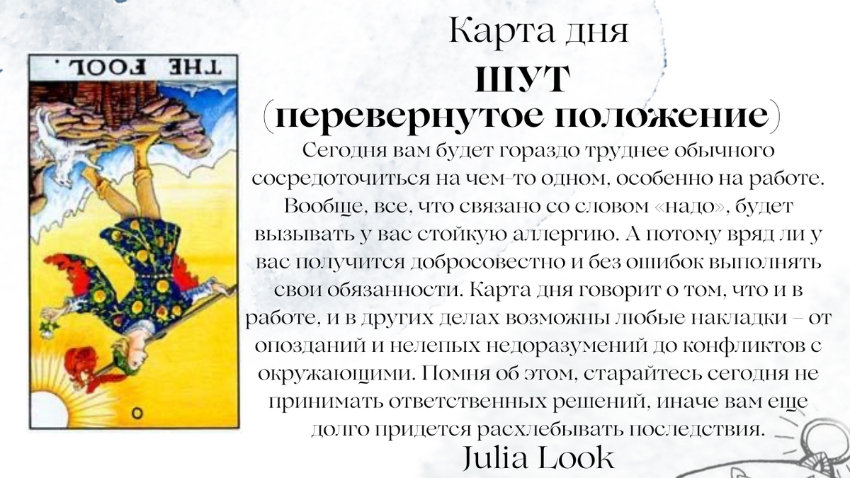 🧧ТАРО КАРТА ДНЯ - Старший Аркан ШУТ перевернутое положение