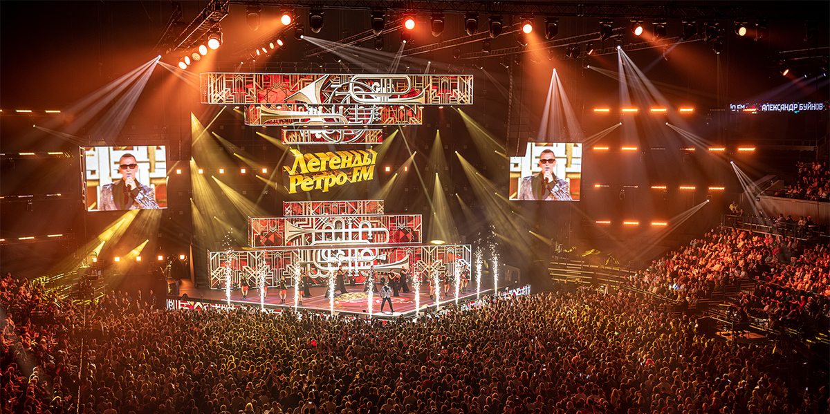 Сцена «Легенд Ретро FM» сияла сотнями разноцветных огней. Масштабные декорации благодаря многоуровневым экранам преображались для каждого музыкального номера знаменитых артистов. «ВТБ Арена» превратилась в гигантский калейдоскоп, благодаря которому аудитория супершоу отправилась в волшебное музыкальное путешествие, соединившее разные жанры, поколения и континенты.