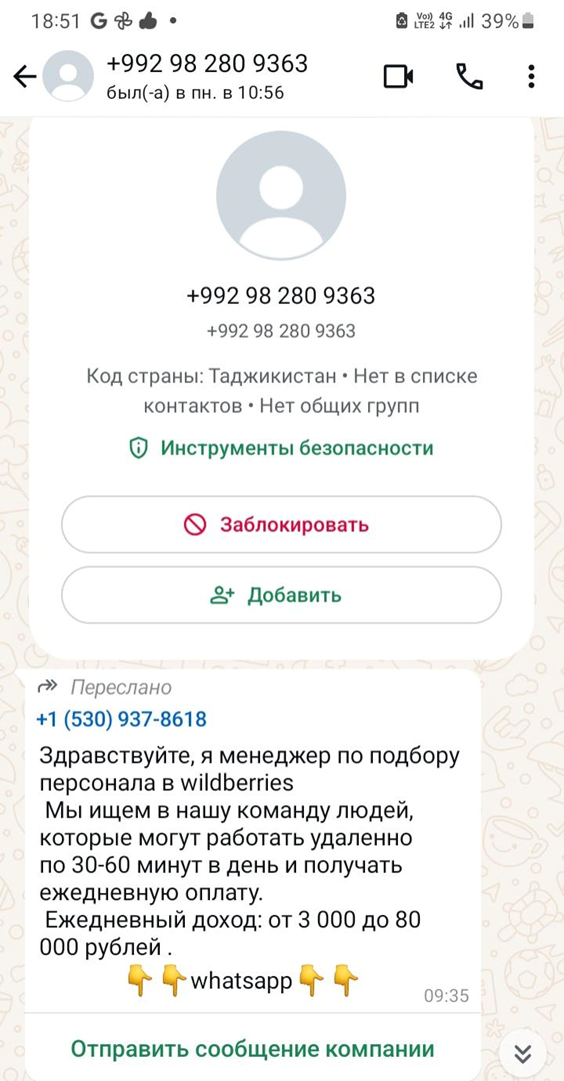 25.11.2024 г. мне написали в WhatsApp c зарегистрированного в Таджикистане номера телефона +992 98 280 9363 следующее: