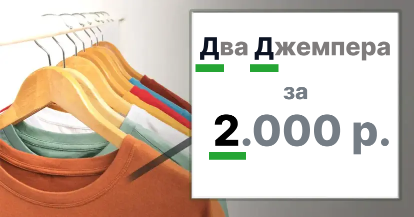 Покупатели с большей вероятностью купили бы два джемпера за 2000 рублей из-за совпадения звуков [д].