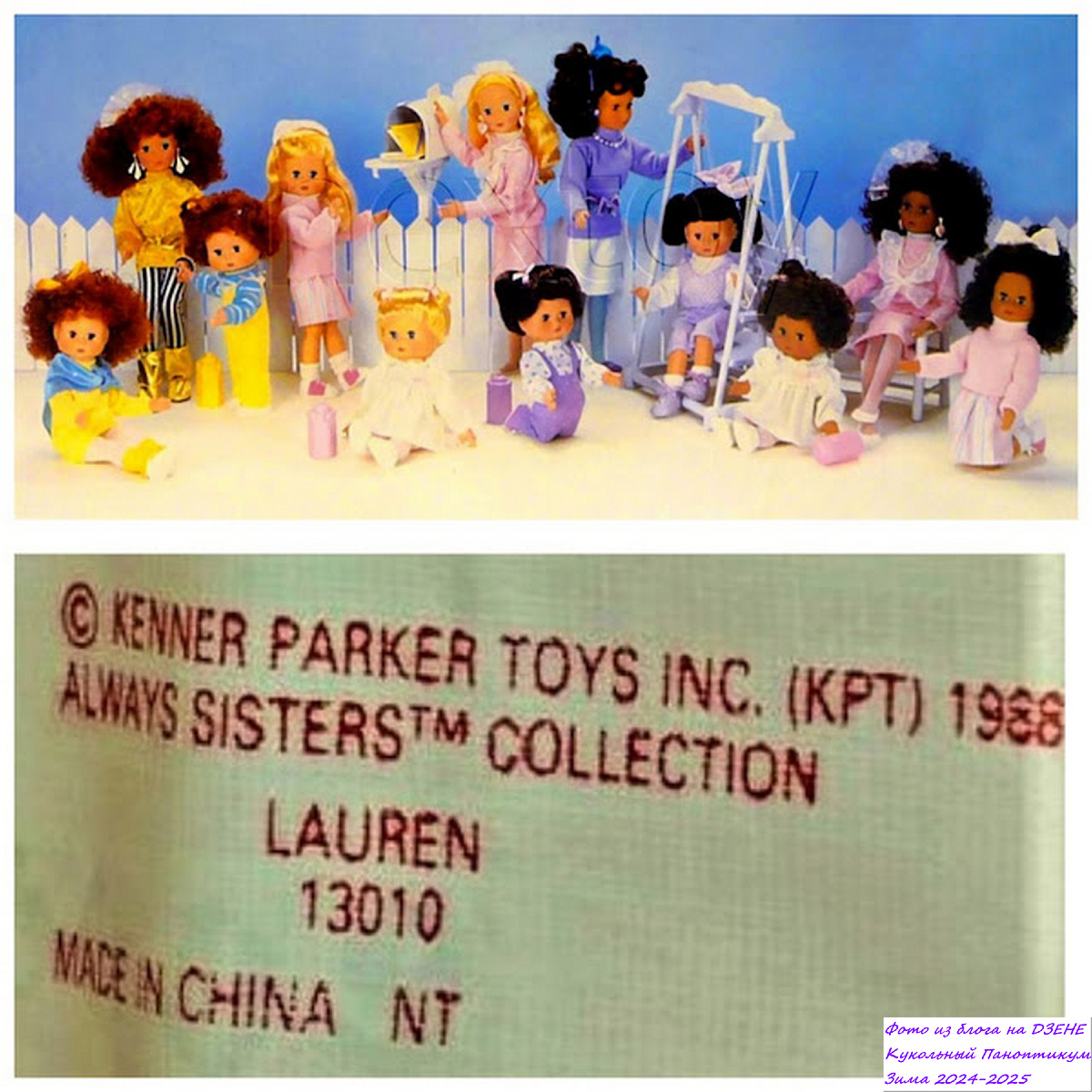 Здравствуйте, дорогие зрители и читатели! Продолжаю перепись КуклоНаселения моего Кукольного Паноптикума. В серии было 12 кукол, четыре группы по три сестры. Куклы продавались как по отдельности, так и в семейных наборах по три сестры: младшая, средняя, старшая. Также было выпущено восемь комплектов нарядов для старших сестер. Каждая кукла поставляется с подвеской в форме сердца с фотографией всех трех сестер, с которыми они были семьей. Средняя и старшая сестры шли в наборе с расческой(?), а младшая - с щеткой и бутылочкой. Все куклы с головой и кистями рук из твердого пластика (или винила?). Все куклы имеют тканевые тела с «арматурой-скелетом» внутри. У них есть голеностопные, коленные и локтевые суставы, т.е. при вашем старании куклы могут принимать довольно естественные позы. Но стоять без опоры большие куклы не могут – заваливаются. У кукол круглые «классически кукольные» глаза из пластика, есть опять же классические кукольные ресницы. Глаза не закрываются. Волосы в основном вь