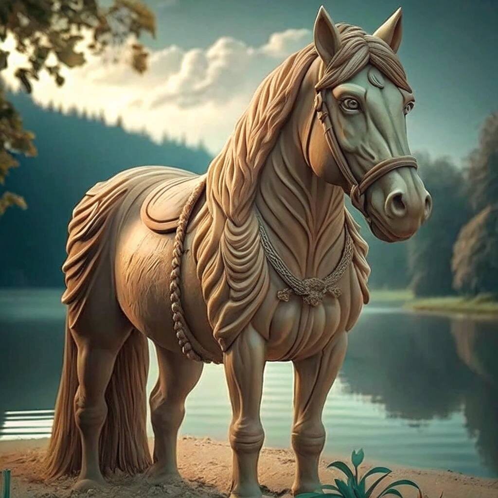 1 путь (коучинг): Вижу огромную фигуру игрушечного коня, очень много песочного цвета. Фигура тоже из песка… очень непонятные ощущения по этому пути. Некомфортно.