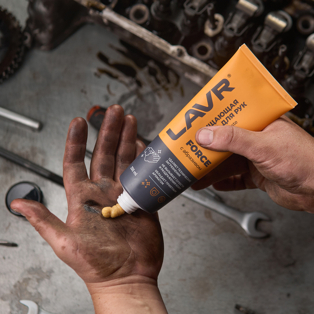 Решить задачу быстро и безопасно поможет очищающая паста для рук с натуральным абразивом FORCE LAVR PRO LINE (Ln1756). Она с легкостью удаляет сложные технические загрязнения, не вызывает сухости и растрескивания. Не ост