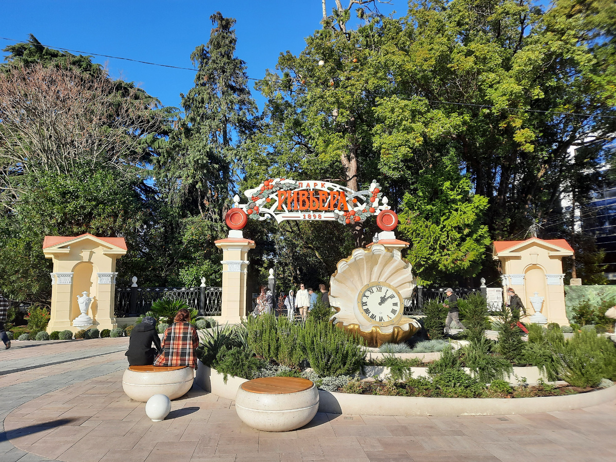 Продолжаю повествование о моих проводах осени. Если бы я не запланировала посетить Ривьерскую набережную, я бы в парк Ривьера не пошла. А так как время приближалось к обеду, решила, что надо где-то перекусить. И тут я вспомнила про пышечную, которые так расхваливали блогеры. Так мне их захотелось. Ну, опять же, почему не написать хорошо узнаваемый ориентир, а не улицу - мы же не местные? Спросила у местного жителя, где указанный адрес, он мне как начал объяснять куда надо идти - в общем, через подземный переход на соседнюю улицу. Хорошо хоть не пошла. Решила прогуляться по парку там, где мне понравилось зимой 2021 года. Дошла до особняка Хлудова Погода просто отличная! Свернула на аллею, которая ведёт к бювету с минеральной водой Пластунская, набрала водички. Кстати, вы знали, что здесь есть бювет? И отправилась по самой красивой аллее дальше. Эта аллея приведёт к красивому фонтану, который обязательно включат на новогодние праздники. Ну а я свернула к розарию. Здесь очень мног