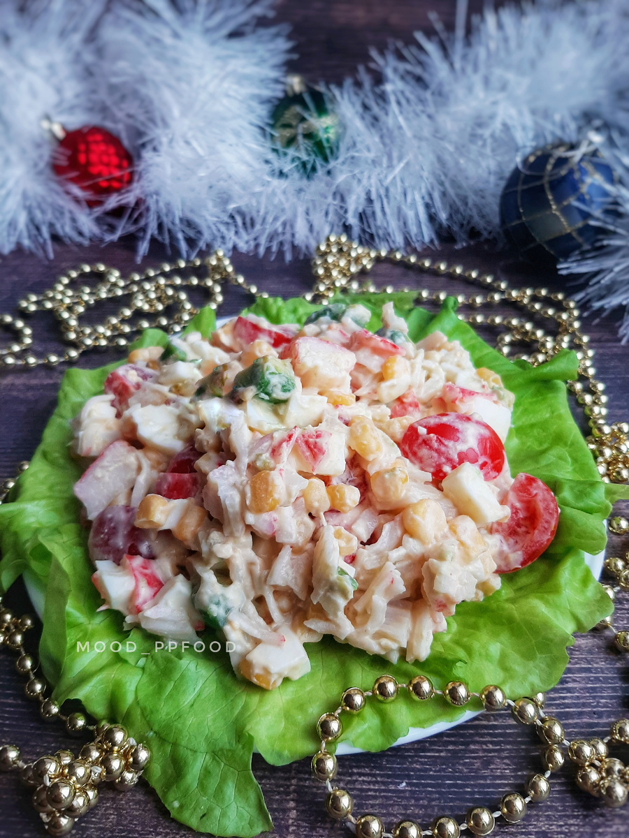 Крабовые палочки - 150 г. Яйцо куриное - 3 шт. Авокадо - 100 г. Кукуруза консервировая - 100 г. Помидоры, у меня черри - 100 г. Йогурт греческий 2% - 80 г. Соль. 1️⃣ Яйца отвариваем, остужаем. С кукурузы сливаем сок. 2️⃣ Нарезаем и складываем в миску: помидорки, яйца, крабовые палочки, авокадо и добавляем кукурузу. 3️⃣ Подсаливаем и заправляем салатик греческим йогуртом. Готово, приятного аппетита 😋