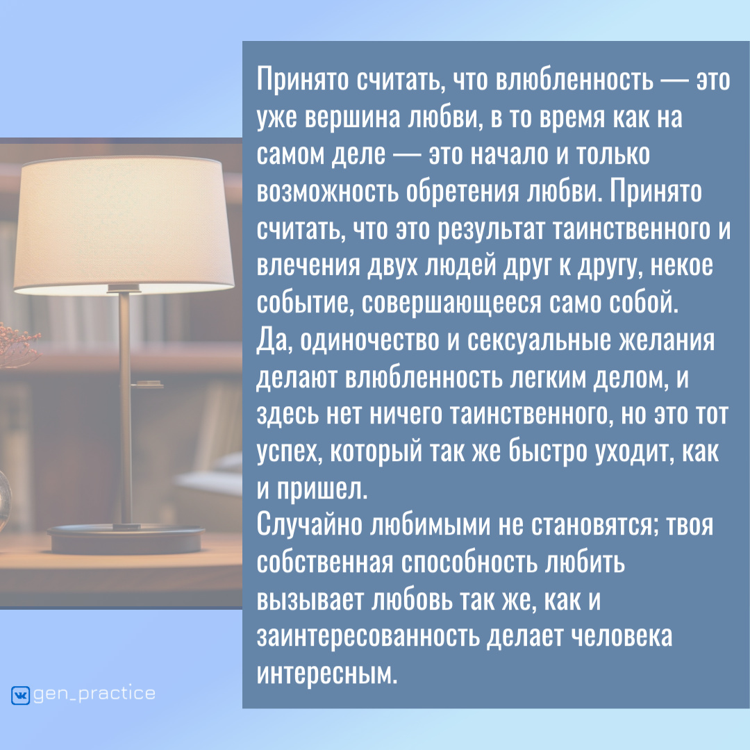 Любовь — это роза. Каждый лепесток — иллюзия, Каждый шип — реальность. Шарль Бодлер, французский поэт Романтические или любовные отношения часто развиваются по условно схожему сценарию. Приглашаю вас, дорогие читатели, исследовать этот вопрос с точки зрения гештальт-подхода. Влюбленность (контактирование) Очаровательная фаза, полная увлечения, страсти и романтики. Партнер воспринимается как объект притяжения, мысли сосредоточены на нем. В гештальте - это контактирование: активное взаимодействие и удовлетворение. Проблемы и сложности пока не видны. Слияние (полный контакт) Интенсивность отношений на пике. Партнеры сливаются друг с другом, не замечая какие-то части себя. Внимание направлено на партнера, собственные потребности (отдых, сон и т.д.) отодвигаются на второй план, постепенно накапливаясь и приводя к росту напряжения, тревоги или ревности. Насыщение и конфликт (прерывание контакта) Большинство любовных потребностей удовлетворены, гормональный фон стабилизируется, и на поверхнос