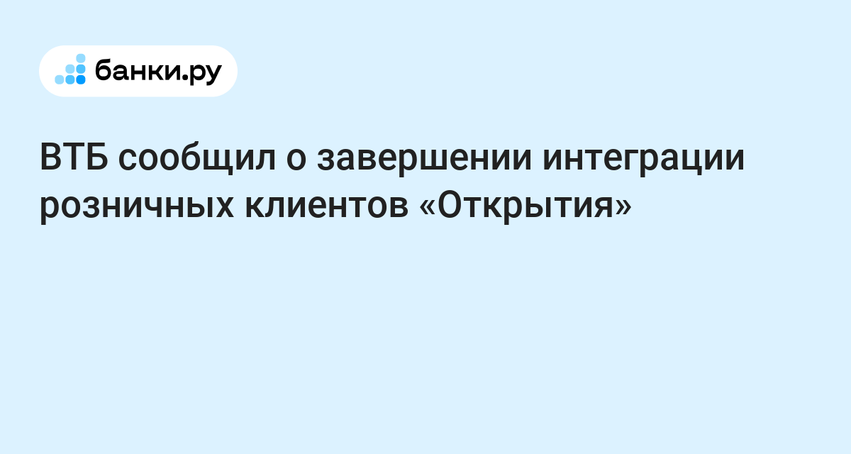 ВТБ сообщил о завершении интеграции розничных клиентов «Открытия»