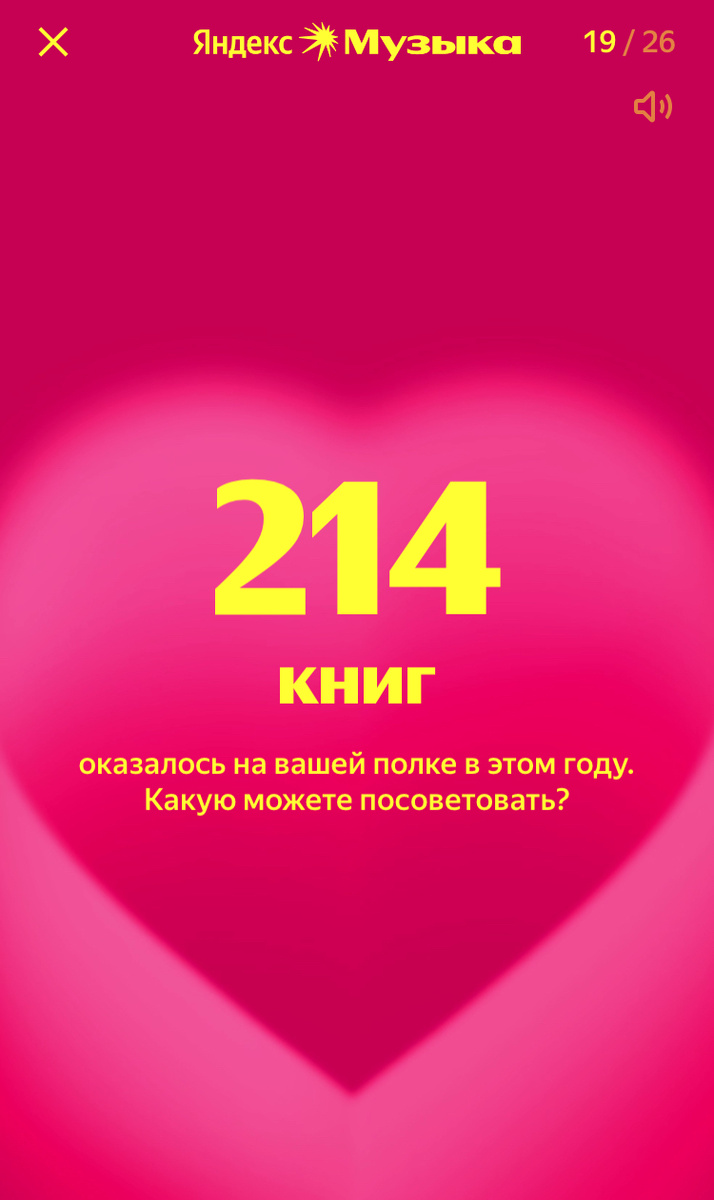 #книжная_реплика На яндекс-музыке появились итоги года, просто в самое сердечко мне (музыкальные тоже ничего, но этот блог про книжки во всех вариантах, вот это снобское "книжки нужно читать, только читать" - лесом. Зуб даю, что я за свою жизнь прочитала в разы больше книг, чем эти "читатели", если захочется мериться кое-чем - я читаю куда больше, чем успеваю писать в блог, потому что ну ясно же что мне интереснее). В числе этих 214 книг, к слову, предпоследний роман Пелевина. Дважды проспав его (!!!), дважды, причем с начала и до конца (!!!), я отчаялась понять, про чо там книжка. Да и как снотворное она уже перестала действовать. Но кое-что я действительно слушаю. И это неплохо, да. Я вообще прицельно развивала своё умение смотреть кино и слушать книги, потому что единственный способ восприятия информации через буквы сужает мой мир. Ой, чота разболталась, ггг. ЗЫ это не реклама - а жаль(