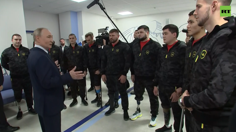 Владимир Путин в ходе посещения Национального медицинского исследовательского центра травматологии и ортопедии имени Н.Н. Приорова пообщался с пациентами, в том числе с участниками специальной военной операции. RT вёл трансляцию.