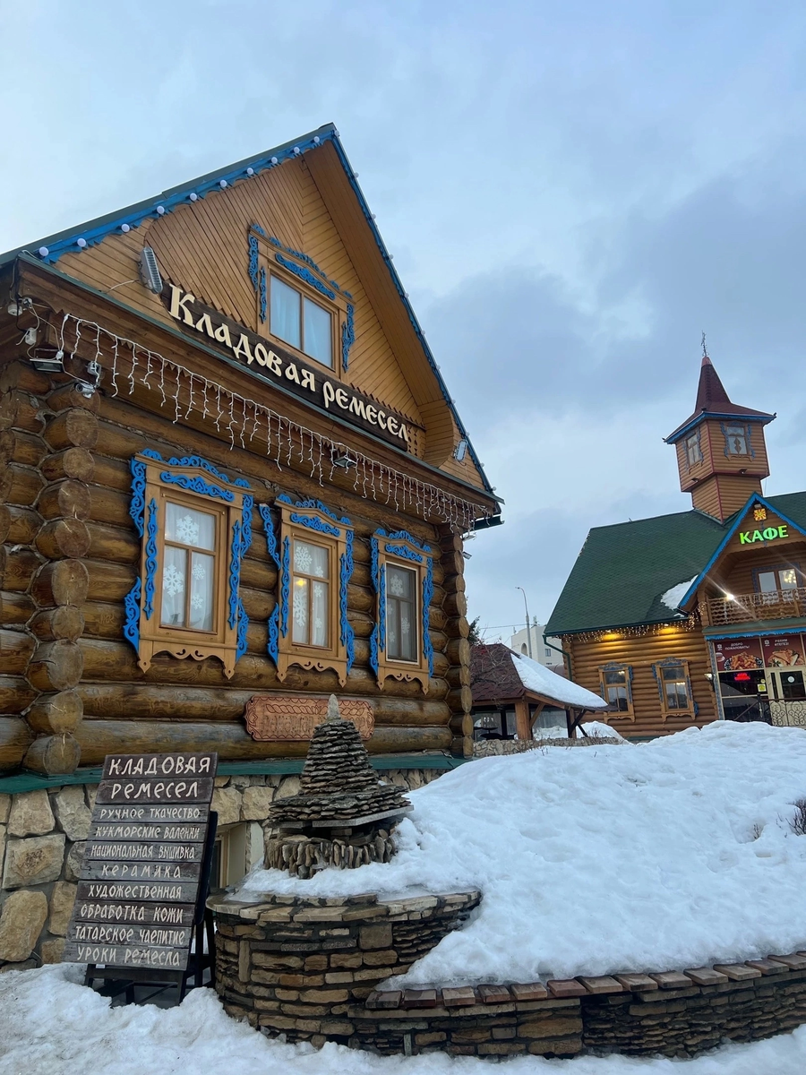 И это - уникальный деревянный комплекс - музей под открытым небом, который рассказывает о быте татар. Сейчас расскажу подробнее, что же здесь делать. Туган Авылым - это своего рода воссозданная татарская деревня, которая находится в самом центре города. Поэтому, чтобы побывать в селе, не обязательно ехать за пределы Казани. А можно попасть в Туган Авылым и увидеть все своими глазами. Итак, что же есть в татарской деревне ? Здесь есть мельница, которая всегда была в деревнях и при помощи которой добывался хлеб. Сейчас же в мельнице можно пройти различные мастер-классы, например, по чеканке монет или кожевенному искусству. А также на первом этаже мельницы находится костюмерная, где можно взять в прокат костюмы казанских ханов или цариц, либо татарский национальный костюм и сделать в нем красочные фотографии на память. На территории Туган Авылым есть даже баня или татарская мунча, которая парит по всем канонам татарского народа. Здесь можно взять сеанс парения, где можно окунуться