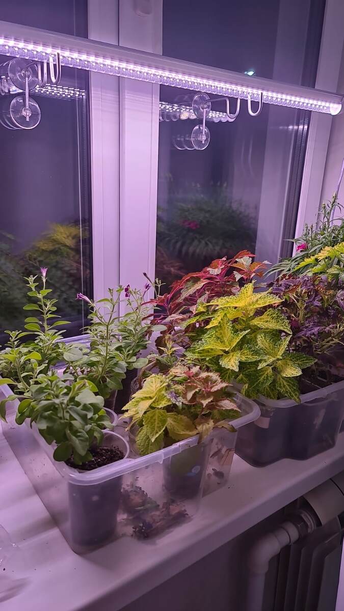 Мечты продолжают сбываться, и я с радостью делюсь своей недавней находкой — новой фитолампой с белым свечением мощностью 30 Вт. Доброе время суток, друзья! Это устройство стало настоящим подарком для моих комнатных растений и не только. Как только я включила эту лампу, заменив с розовым свечением на 18 Вт, мои цветочки начали активно реагировать на её свет. Особенно это касается колеусов, которые, несмотря на то, что ранее находились под розовой лампой, потеряли свою яркую окраску из-за недостатка света. Теперь же они словно ожили и расцвели так, как будто за окном уже весна или даже лето. Даже сорт Аватар, чувствительный к свету, стал раскрашиваться всеми цветами радуги. Неожиданно для меня черенки вегетативной петунии, которые всего два дня находились под новой лампой, начали выбрасывать бутоны. Это просто удивительно, как быстро растения могут реагировать на изменения в условиях освещения! Я сразу же замерила уровень освещенности на уровне верхушек растений и была приятно удивл