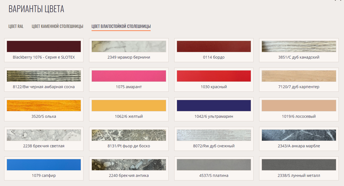 Мы предлагаем широкий выбор цветов для медицинской мебели – больше 180 цветов RAl, 48 цветов каменной столешницы и 33 цвета влагостойкой столешницы.