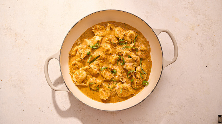 Когда мы слышим слово «песто», на ум приходит классический генуэзский соус из оливкового масла, пармезана, чеснока, кедровых орехов и базилика. Этот густой, ярко-зеленый соус способен превратить любое блюдо в шедевр, добавляя аромат чеснока и базилика. Но что, если добавить в него немного лета? Представляем вам рецепт сицилийского песто с запеченными черри, который станет настоящей звездой вашего стола. Список ингредиентов настолько прост, что вы удивитесь, как из него получается такое вкусное блюдо. Вам понадобятся: черри, базилик, оливковое масло, чеснок, свеженатертый пармезан, соль и кедровые орехи. Орехи можно обжарить на сковороде на среднем огне. Для завершения рецепта выберите тортеллини. Лучше всего подойдут свежие тортеллини с сыром, но также можно использовать со шпинатом, итальянской колбасой или прошутто. Для подачи украсьте блюдо пармезаном и базиликом. Томатный песто так же универсален, как и его зеленый собрат. Его можно использовать в качестве соуса или маринада для ку
