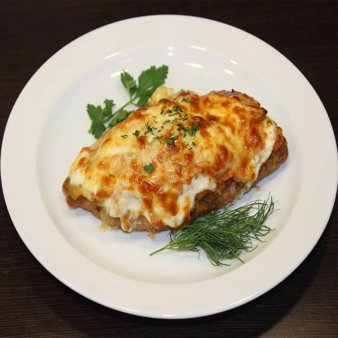 Сытно, просто, красиво и очень празднично! 1 кг свинины (окорок, лопатка) 500 гр. шампиньонов или отварных лесных грибов 2 шт. репчатого лука морковь средняя 4 ст. л. растительного масла 100 гр. сметаны 2 ст. л. майонеза сыр твердый для корочки соль, перец Мясо нарезать порционными ломтями-кусками, немного отбить. Посолить и поперчить. Выложить в смазанную маслом форму для запекания Лук нарезать соломкой, морковь натереть на терке. Спассеровать лук с морковью на растительном масле. В конце добавить майонез. Шампиньоны нарезать пластинками и обжарить отдельно. Если у вас есть отварные лесные грибы, то этот пункт пропускаем. Грибы смешать со сметаной, немного подсолить и поперчить. Разложить на каждый кусок свинины ровным слоем. На грибы слой морковной зажарки с майонезом. Запекать при 170 градусах 30 минут. Затем присыпать сыром и вернуть в духовку еще на 5-10 минут.