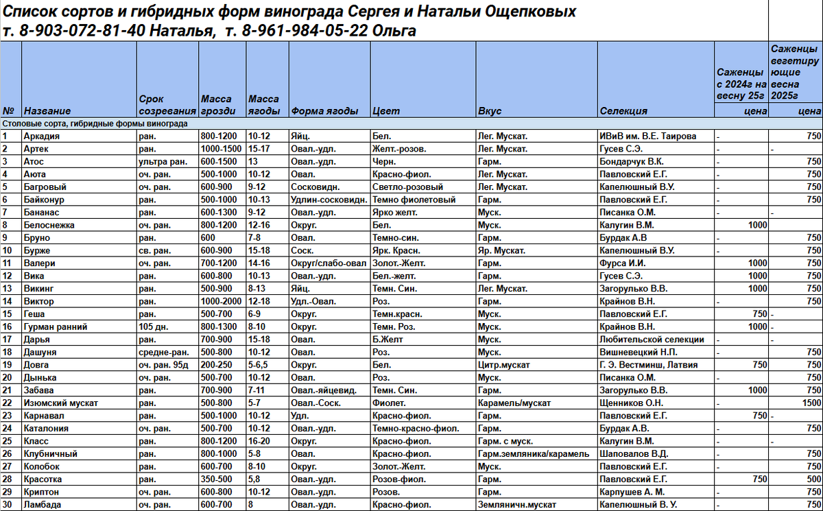 Наш прайс на весну 2025г