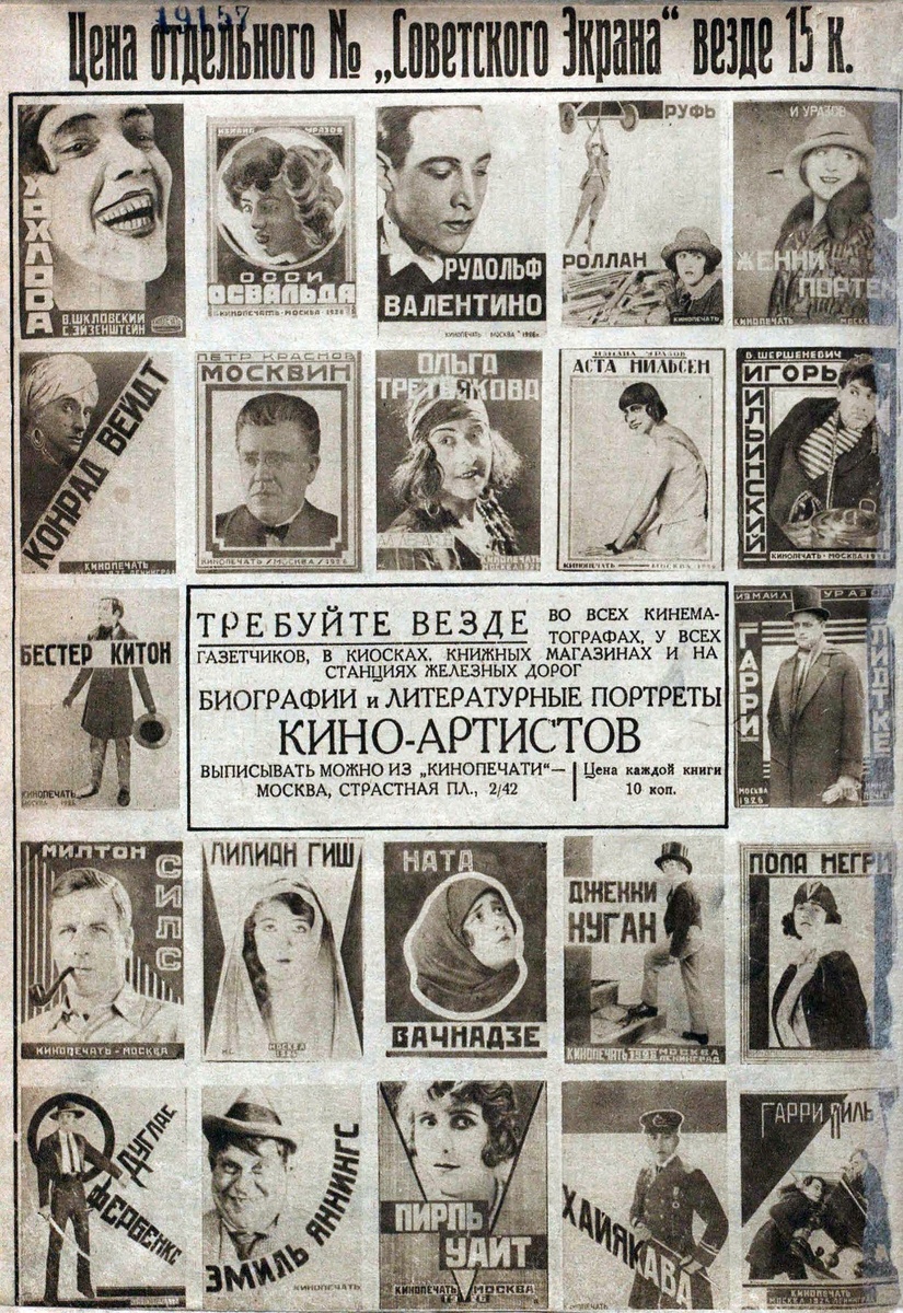Принесла лента новостей мне чудесный кадр из далеких 20-х годов. Человек не поленился и выложил обложку журнала «Советский экран» из начала прошлого века. Вглядитесь, пожалуйста, в лица, изображенные на ней, и задумайтесь, сколько из них вам знакомы. Ладно, пусть будут не лица, а фамилии, благо они там тоже подписаны. Для моего поколения все представленные здесь звезды, а это именно звёзды, являются чем-то неизвестным. Чем-то таким, что мы не знаем. Я допускаю, что это именно я такой тёмный человек, но у меня имеется любопытство. Так вот я показал картинку старшим товарищам, и они опознали в лучшем случае трёх актёров с картинки. Человек, выложивший фото тоже знает лишь три фамилии. О чём нам это говорит? Да о том, что переживания по поводу чьей-то современной известности не стоят и выеденного яйца. Ну, носятся сейчас с Пересильд или тем же Кологривым. Только это не имеет никакого значения для вечности. Их забудут точно так же как забыли всех этих людей с обложки журнала представленной