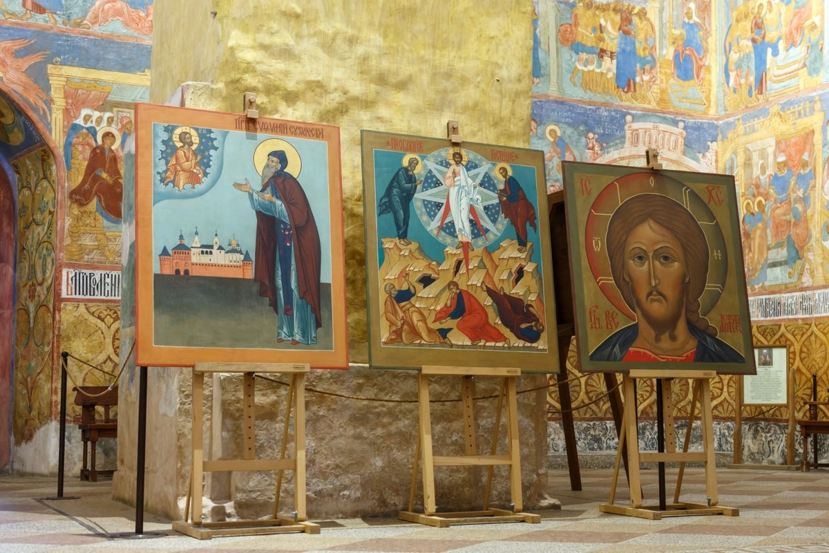 Друзья, если будете гулять возле Спасо-Евфимиева монастыря, обратите внимание на новые надвратные иконы. Почти год над их созданием трудились студенты и преподаватели Российской академии живописи, ваяния и зодчества Ильи Глазунова. Это подарок художников к 1000-летию Суздаля. Шесть икон заняли ниши на проездной башне и надвратной Благовещенской церкви. Они располагались там исторически, об этом можно судить по старым фотографиям и иллюстрациям. Образы выполнены в технике силикатной живописи - в качестве связующего материала используется жидкое стекло. Это позволяет находящимся под открытым небом иконам долгое время сохранять яркость и насыщенность красок. Художники стремились к подобию артельного письма XVII века. Освятил иконы благочинный города Суздаля, секретарь Владимирской епархии иеромонах Арсений (Смирнов).