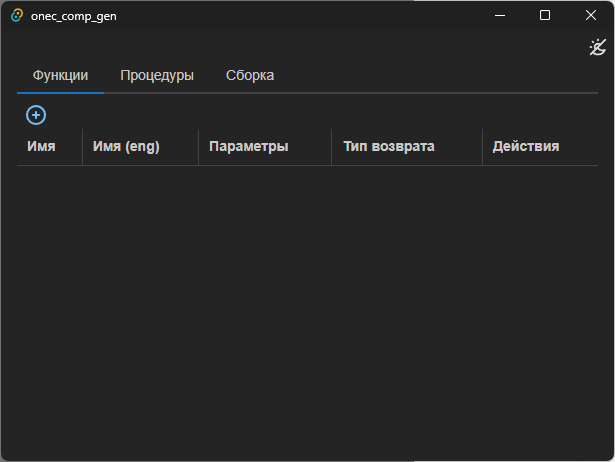 В статье описывается приложение-конструктор внешних компонент (native API). Конструктор упрощает процесс разработки за счет удобного добавления всех нужных функций и процедур в графическом режиме, с указанием их параметров и типов параметров. На выходе приложение генерирует готовый код на С++ и Rust и позволяет сразу приступить к реализации, без настройку API компоненты вручную.