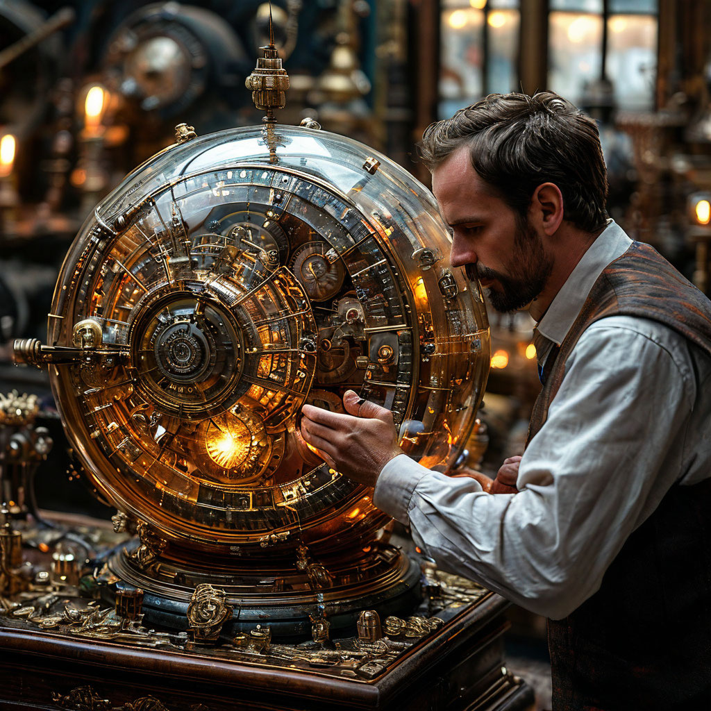 – Ну вот, опять застряло! – проворчал Артур, ковыряясь отвёрткой в хитроумном механизме из медных трубок и старых часов. Его мастерская, больше напоминавшая склад запчастей сошедшего с ума часовщика, гудела от тихого жужжания. Вокруг валялись пружины, шестерёнки, ржавые ключи и записки с непонятными формулами.