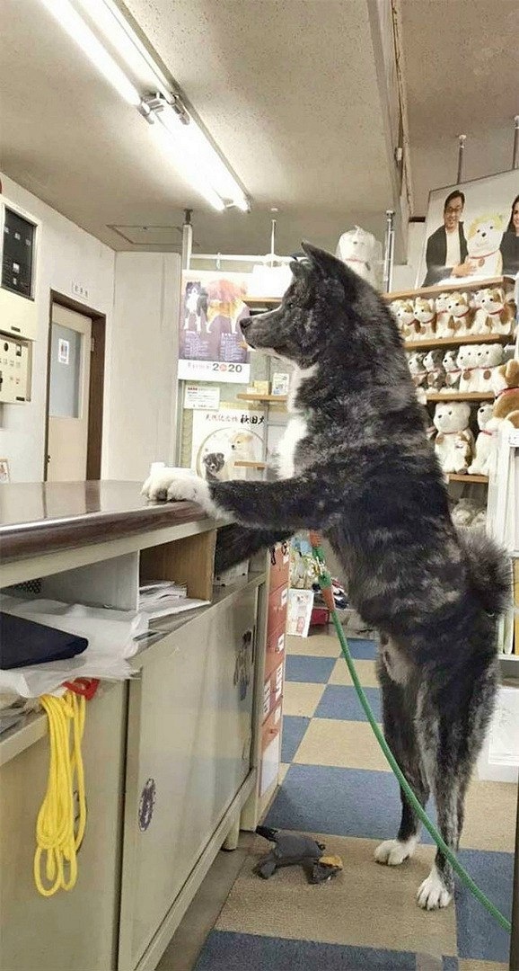 В Центре ассоциации "Акита Ину" работает женщина приходящая на работу со своей собакой - "Субару" Некоторые сотрудники приводят на работу своих детей, но одна женщина, которая работает в Центре ассоциации Акита Ину, приводит своего гигантского пса по кличке "Субару". По сути, он стал своеобразным маскотом этой организации. Огромная собака зачастую поддерживает хозяйку пока та работает, а еще он встречает гостей за стойкой рецепции. И без него уже не проходит ни дня.