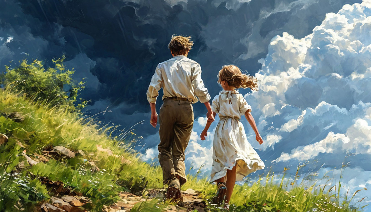 И они помчались вверх по склону, хохоча и подпрыгивая, потому что вдруг поднявшийся ветер норовил сбить их с ног.