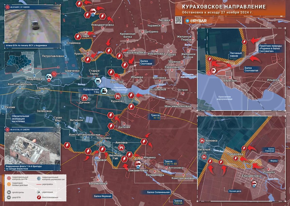Также сегодня было объявлено об освобождении Романовки. Это ДНР, Кураховское направление. Отличились солдаты группировки войск «Юг». Мы видим по карте, что карман с войсками ВСУ, образовавшийся к северу от Курахова, постепенно сдувается. И, во-вторых, момент освобождения Курахова все ближе и ближе. Ждем новых хороших новостей. Да здравствует русская армия! Да здравствует русский солдат!