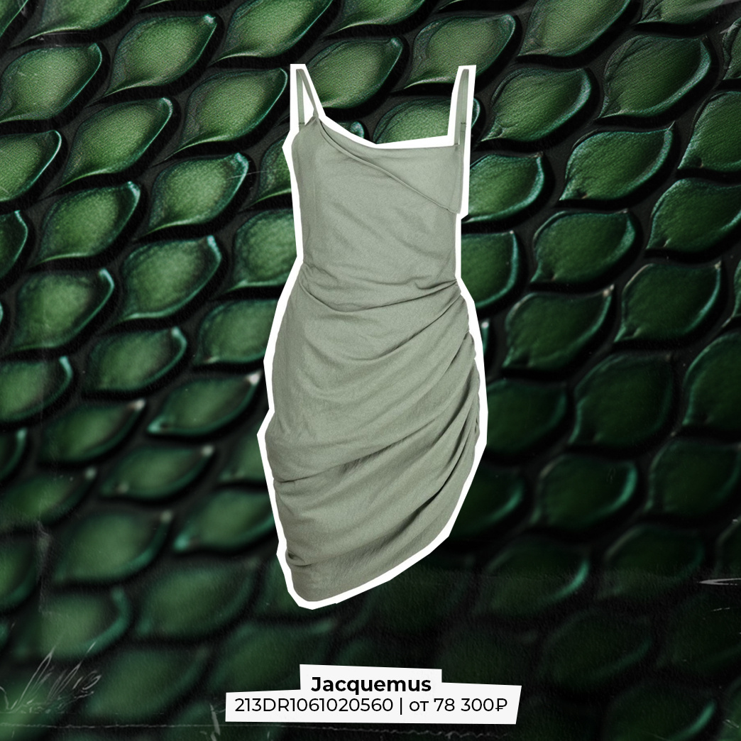 У нас, конечно же. Подборку мы уже сделали, Зеленая Змея останется довольной. Jacquemus, арт. 213DR1061020560, цена от 78 300₽* Rick Owens, арт. RP01C5515SLQI-35I, цена от 32 800₽* Acne Studios, арт. A20586, цена от 56 900₽* Nana Jacqueline, арт. SS23DR481, цена от 20 400₽* Skims, арт. AP-DRS-0596-HDW, цена от 9 200₽* *стоимость может изменяться в зависимости от курса и размера Больше интересного на нашем сайте POIZON
