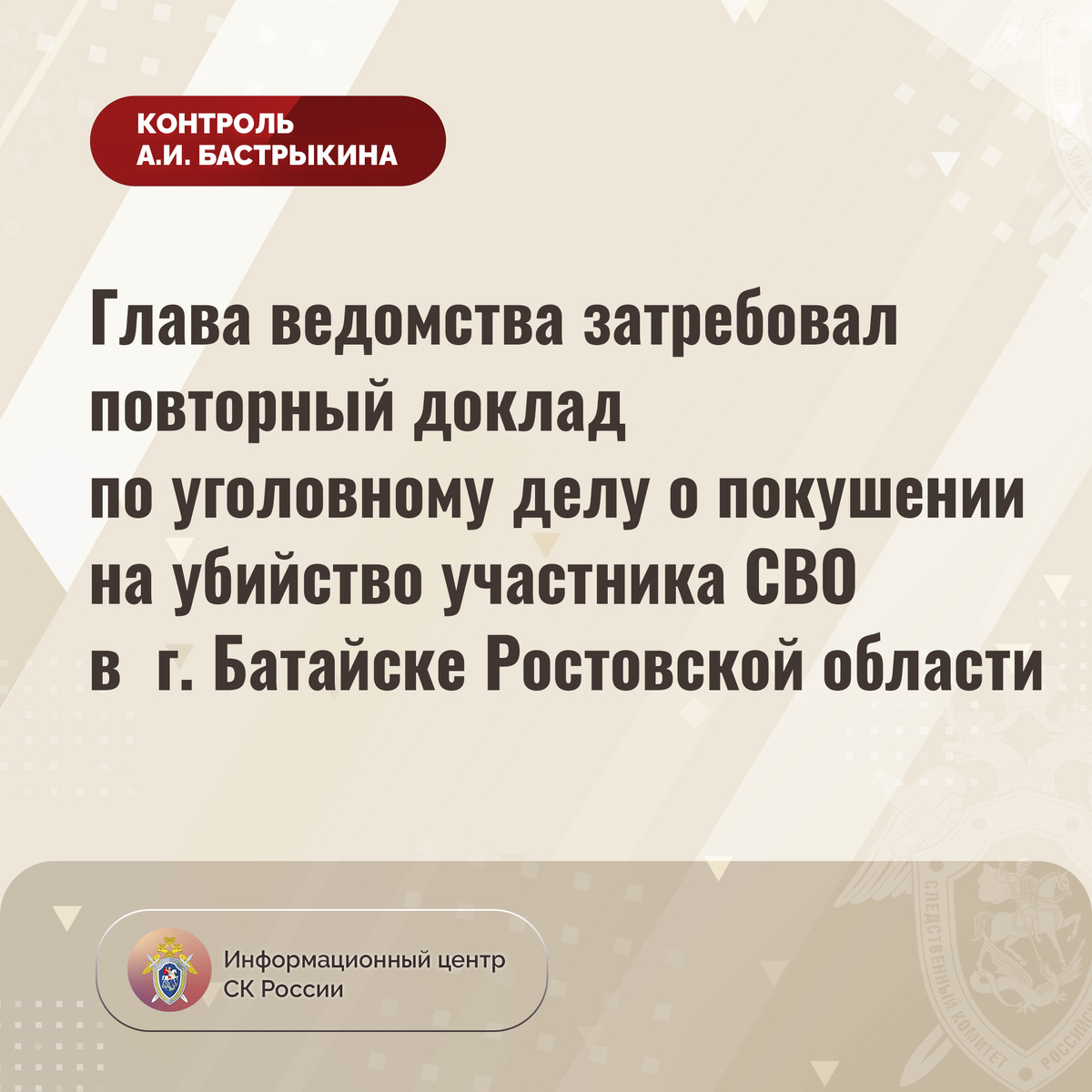 Глава ведомства затребовал повторный доклад по уголовному делу о покушении на убийство участника СВО в г. Батайске Ростовской области