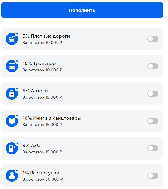 Банк обновил свое мобильное приложение и добавил дополнительные категории с кешбэк, которые можно подключить и получить при сохранении необходимого остаток на картах в течение 30 дней. В онлайн версии ВТБ так же можно их найти. Что у меня выпало (выпадает индивидуально): 5% платные дороги за остаток 10 000 10% транспорт за остаток 20 000 5% аптеки за остаток 15 000 10% книги и канцтовары за остаток 15 000 3% АЗС за остаток 15 000 1% все покупки за остаток 50 000 При выборе нескольких категорий, минимальный необходимый остаток суммируется. Лимиты 3000о. в месяц (входят в общий с категориями на месяц) Как подключить: 1️. Выбрать категорию кешбэка 2️. Продержать необходимый остаток на картах любые 30 дней в период действия предложения. 3️. После выполнения условий по поддержанию необходимых остатков категория кешбэка подключится автоматически и будет действовать в течение 30 дней. Условия Еще больше интересных лайфхаков и акций на Телеграм канале Заглядывайте!