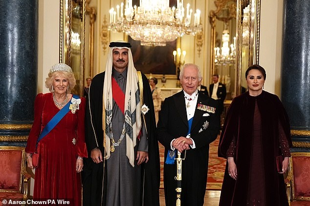 Вечером третьего декабря в Букингемском дворце состоялся государственный банкет в честь королевской семьи Катара. Королева Камилла присутствовала на этом банкете, во всяком случае, на начальном его этапе, несмотря на продолжающиеся проблемы со здоровьем. На ней в этот раз было вечернее платье от Fiona Clare с тиарой Diamond Kokoshnik, которая принадлежала Королеве Елизавете II. Камилла дополнила свой образ бриллиантовыми серьгами из своей частной коллекции, бриллиантовым ожерельем, принадлежавшим Королеве, и браслетом из рубинов и бриллиантов. Она также носила фамильные ордена короля и Королевы. Напомним, члены королевской семьи надевают тиары только в редких случаях: королеве Камилле и другим женщинам, включая принцессу Уэльскую, разрешено носить их только во время государственных банкетов, официальных мероприятий, королевских свадеб и коронаций. Среди гостей были Дэвид и Виктория Бекхэм. Это, безусловно, большой успех для пары и для Дэвида - его мечта стать сэром все ближе к осущест