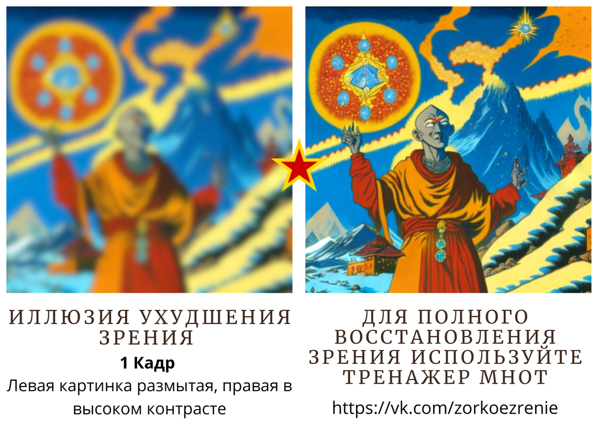 Зрение может мгновенно, как ухудшиться, так и улучшиться. Закройте левый глаз и смотрите 1 кадр. Затем посмотрите двумя глазами второй кадр. Поменяйте глаза. И повторите процедуру с правым глазом. После того как дадите короткий отдых глазам, оглядитесь. Ваши глазки Вам спасибо скажут! 😊