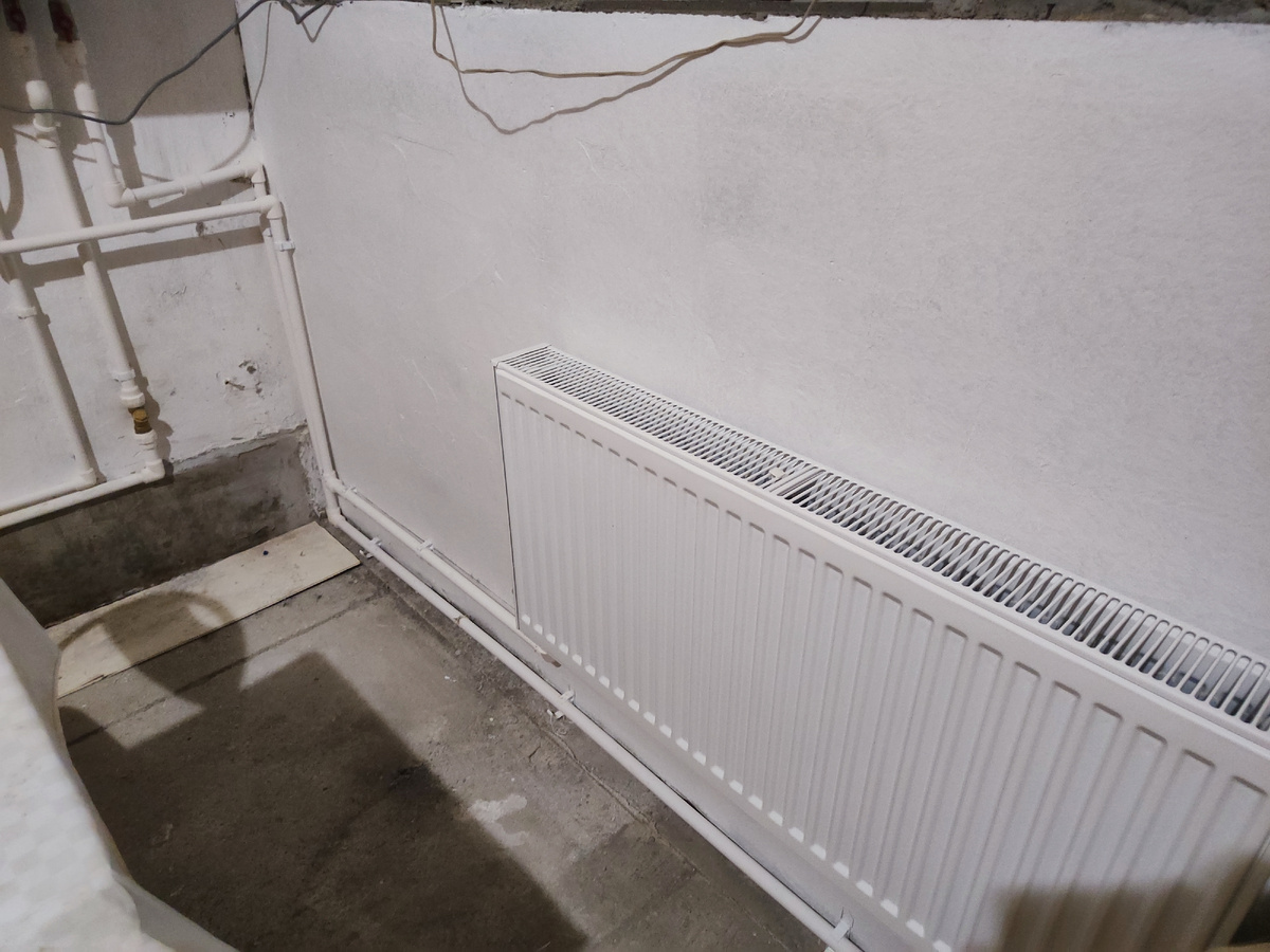 Повесили батарею, подвели трубы к котлу и на раковину. Единственное, что не установили смеситель. Просто сэкономили пока. Очень много трат было, и фурнитура и смеситель сейчас не вписались. Но это не долго и не трудно, и не сложно сделать в будущем. У нас теперь отдельно кран холодной и отдельно кран горячей.) И батарея!!! Все молодцы.