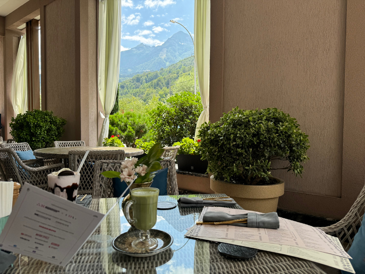 Самый красивый вид на горы 🏔️ на Красной поляне открывается, с летней террасы ресторана Джорджио Сулугуни Giorgio Suluguni .